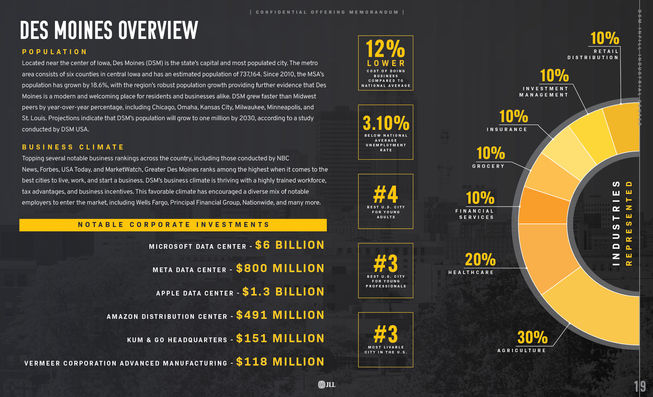 This Offering Memorandum was for a property that had a tenant which is an equipment dealer that works with Caterpillar, Inc. I utilized their company branding as inspiration for the color scheme and layout that I created for this book.